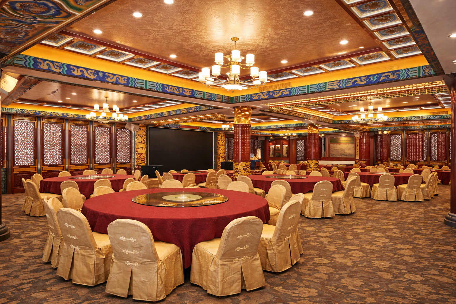 Golden Unicorn’s quarters, with its elaborate chandeliers and lighting, lush red-and-gold decor, and expansive space, offers the perfect, memorable backdrop for any type of event or festivities.